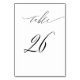 Elegant White Black Modern Script No 26 Wedding Table Number