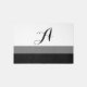 Elegant White Black Monogram Bath Rug is modern stylish designed with white customizable background and wide black and grey stripe on lower half. rendy script monogram centered on upper half of rug. CLICK PERSONALIZE TEMPLATE OPTION AND ENTER MONOGRAM INITIAL.