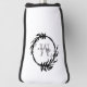 Elegant White & Black Monogram Name Wreath Golf Head Cover