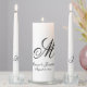 Elegant White Black Monogram Script Wedding Unity Candle Set