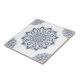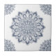 This beautiful boho white and blue mandala ceramic tile features an elegant lace look medallion design.