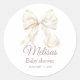 Elegant White Bow Baby Shower Classic Round Stick Classic Round Sticker