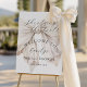 Simple, stylish and beautifully feminine, this bridal shower welcome sign exudes elegance showcasing a large luxurious ivory white watercolor bow as its centerpiece. The bow is angled and slightly off-center, appearing soft and flowing with delicate shadows giving a 3-D effect. A font pairing of modern handwritten script and elegant serif presents your text beautifully. Simply personalize the template with your event details.