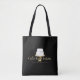 An elegant white tiered cake decorated with flowers sits atop a faux gold cake stand for a beautiful aesthetic on this bakery-themed personalized tote bag. Perfect for bakers, catering companies, cake decorators, or for personal use. Design © 1201AM Design Studio