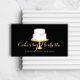 An elegant tiered white cake decorated with white flowers sits atop a faux gold cake stand for a beautiful aesthetic on this bakery or cake decorator's business card template. Update the calligraphic text with your name or business name for an instant logo. The double-sided design allows plenty of room for your information on the backside. © 1201AM CREATIVE