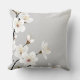 This refined artwork showcases white cherry blossoms set against a soft gray gradient background, evoking calm, simplicity, and natural beauty