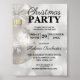 This elegant and chic Christmas Party Poster design features a pretty silvery and white background with a white Christmas ornament and a white ribbon.