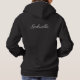 Stay cozy while celebrating your milestone with this black hoodie featuring "Class of" in delicate script with decorative dashes, the year in elegant white outlined typography, and the school name below. The back displays the graduate's first name in flowing script for a personalized monogram detail. A keepsake hoodie perfect for cool graduation nights, campus walks, and everyday senior pride. Customize the school name, year, and back name.