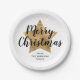 Elegant White Faux Gold Star Merry Christmas Paper Plates