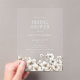This elegant white floral bridal shower acrylic invitation features fall & winter flowers. Clear background shown with white text and white wedding flowers. Background of bigger white florals is optional. All text, including names, can be changed.