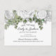 Elegant hand-painted white floral with sage green leaves on white botanical, garden-style wedding Save the Date postcard.