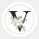 Elegant White Floral Monogram Letter V on White Classic Round Sticker