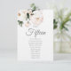 Delicate white roses at the top left of this elegant table assignment card. Customizable grey typography for table name or number, and for the list of guests.