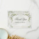 An elegant wedding thank you card featuring soft white flowers, delicate greenery, and a refined gold frame for a timeless romantic look. The airy botanical details and graceful typography create a polished design that is perfect for garden weddings, formal celebrations, and coordinated wedding stationery suites. A beautiful choice for couples who love soft floral wedding accents with a fresh, classic, and sophisticated feel. This card is a lovely way to share heartfelt thanks after your wedding day.