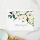 This elegant white floral wedding thank you card is perfect for a classic wedding. The modern vintage design features beautifully romantic ivory and cream watercolor rose and peony flowers with dark green leaves, greenery and botanicals. Personalize the back of the card with your names, and a thank you message. Alternatively, leave the thank you message template section blank to hand write a personalized note on each card after they arrive. These cards can be used for a wedding, bridal shower, or any special event.