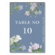 Each table number features a striking dusty blue background adorned with elegant white flowers, creating a stunning contrast that exudes refinement and grace. The design is meticulously crafted to enhance the beauty of your reception tables, ensuring a cohesive and stylish look throughout your venue.