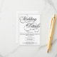 A formal, elegant white wedding details card with black calligraphy script.