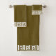 Elegant White Geometric Pattern Frame on Brown Bath Towel Set