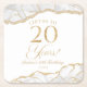 Elegant White Gold Agate 20th Birthday Party Square Paper Coaster