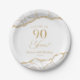 Elegant White Gold Agate 90th Birthday Party Paper Plates