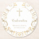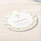 Elegant White Gold Cross Confirmation Round Paper Coaster