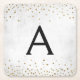 Elegant White - Gold Foil Confetti Monogram Square Paper Coaster