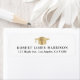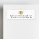 Elegant white graduation return address label featuring a gold grad cap and the graduate's name and address in modern lettering.