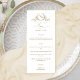 Elegant monogrammed wedding menu with beautiful hand drawn crown crest monogram and modern hand written calligraphy details. Simple and elegant style. Ability to personalize with your menu. Design in white and gold. Monogram and Menu In Script calligraphy in faux gold foil. Monogram letters and menu description in golden hues. Ability to change white background color to other colors by using the design tool. Part of our "Elegant Calligraphy Minimalist Wedding Stationery" collection with a variety of coordinating products available. Visit the entire collection at: https://www.zazzle.com/collections/elegant_calligraphy_minimalist_wedding_stationery-119497981924462546
