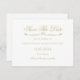 This elegant wedding save the date card features a simple faux gold script typography design on a white background accented by a heart flourish . Personalize with your names, date and town/state. Coordinates with our Elegant White & Gold Monogram wedding invitation suite designed by artist Susan Coffey.