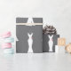 Wrapping paper - repeating pattern on a classy gray background. A graphic illustration of an elegant white gown hanging on a hanger. Simple minimalist design.
