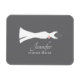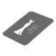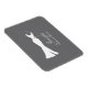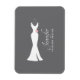 Magnet made with a classy gray background. A graphic illustration of an elegant white gown hanging on a hanger. Simple minimalist design.