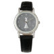 Personalized watch made with a classy gray background. A graphic illustration of an elegant white gown hanging on a hanger. Simple minimalist design.
