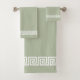 Elegant white Greek pattern on sage green Bath Towel Set.