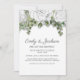 Elegant White Hand Drawn Flowers Green Wedding Invitation