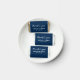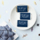 A refined miniature wedding favor featuring "Thank You" in white calligraphy script with a delicate heart flourish and the couple's names and date styled as a personalized monogram element against a deep navy background. The rich, classic tone creates a polished, elevated look. Personalize the names and date for a meaningful reception favor. All text is fully editable.