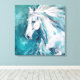 Elegant White Horse Art on Blue Background Canvas Print