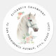 Elegant White Horse Boho Floral Address Classic Round Sticker