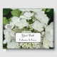 This is an elegant forest green and white flower floral wedding guest book with white hydrangea flowers photo design. It is perfect for a summer or fall and garden wedding celebration.