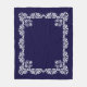 Elegant White Lace Vector on Navy Blue Fleece Blanket