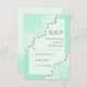 Elegant white lace with pearls mint green wedding RSVP reply/response card featuring white lace with beige/ecru pearls on mint green that covers two corners of a white rectangle with mint green border. Text in brown. Note that lace is “printed on” and not real fabric. This elegant, shabby chic sophisticated and romantic design is part of a wedding set and is perfect for a chic spring, summer or fall/autumn wedding.