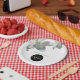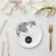 This design features white lily flowers. The beautiful elegant white lilies compliment the elegant black modern circle shape encircling the wedding date. A perfect fusion of modern and chic with green color tones. Green, black and white are a perfect match for an elegant floral garden themed wedding. Unique wedding paper plate design with modern elements. Matching wedding invitations and other stationery items are also available.