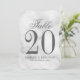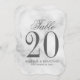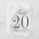 features title "Table" in grey elegant script font style with large table number and wedding details in grey serif font style on white marble background.