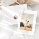 This stunning design combines simplicity with elegance, creating a timeless and sophisticated announcement for your upcoming wedding. The clean white background serves as the perfect canvas for the beautiful script typography, which highlights your names and wedding date in a minimalist and stylish way. Add a personal touch by including your favorite engagement photo, making it a cherished keepsake for your loved ones. To change details, click «Details». To move the text or change the size, font, or color, click «Edit using Design Tool». Designed to coordinate with for the «Chloe» Wedding Invitation Collection. View the collection link on this page to see all of the matching items in this beautiful design.