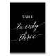 This elegant white on black calligraphy table 23 table number is perfect for a simple wedding. The neutral design features a minimalist card decorated with romantic and whimsical typography. The card prints on the front and back (double-sided). Other table numbers in the collection are sold separately.