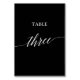 This elegant white on black calligraphy table three table number is perfect for a simple wedding. The neutral design features a minimalist card decorated with romantic and whimsical typography. The card prints on the front and back (double-sided). Other table numbers in the collection are sold separately.