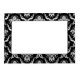 This business card features a black and white floral damask pattern and a customizable monogram.