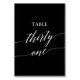 This elegant white on black table thirty one table number is perfect for a simple wedding. The neutral design features a minimalist card decorated with romantic and whimsical typography. The card prints on the front and back (double-sided). Other table numbers in the collection are sold separately.