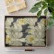 This design features exquisite white orchids, from a vintage botanical illustration, in a repeat pattern. The black backgrounds serves as a dramatic backdrop for this lovely rare floral.