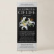This pull-up vertical banner is the dignified way to celebrate the life of a departed loved one. Fields make it easy to change the name, years, and date/venue/time of service. Replace the placeholder image of Casablanca Oriental lilies with one of your choosing, and customize the message and memorial quote easily.