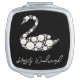 Elegant White Pearl Swan on Black Background Compact Mirror